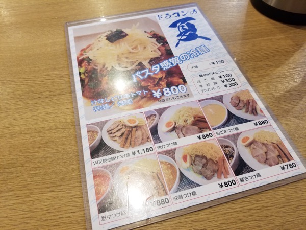 夏の期間限定メニュー。つけ麺もうまそうですね!