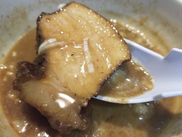 つけ汁の中からチャーシューが出てきました!麺の上に乗っている具が全てと思っていたので、これは嬉しい!
