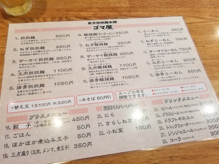 坦々麺がメインで、サンラーメンやしょうゆラーメンなどもあります。