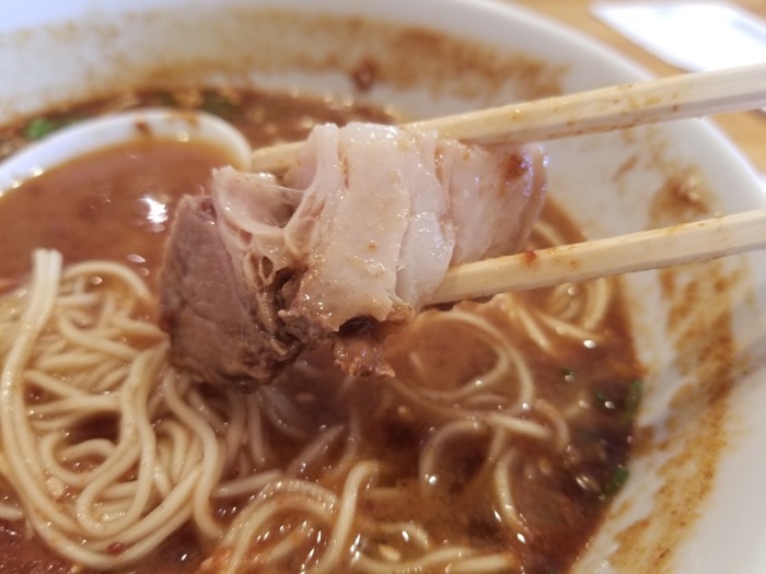 チャーシューはほろほろして、柔らかいです。厚みのあるチャーシュが食べたいなら、太肉坦々麺を注文すると良いです。