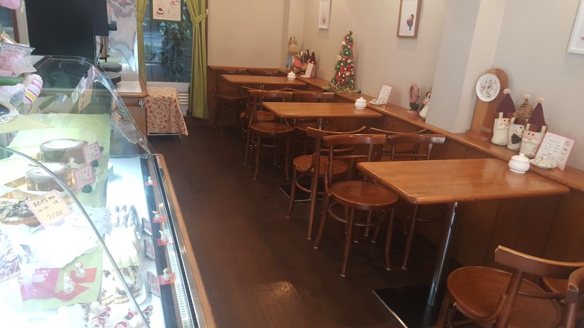 店内にはイートインスペースがあって、トーマスが来店した時には、地元の奥様が二人でスイーツを楽しんでました。