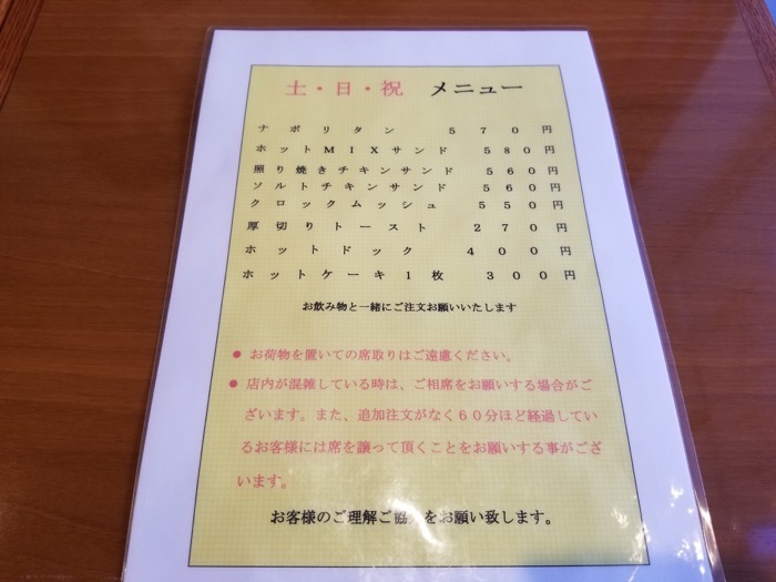 土・日・祝のメニューを紹介していきます。