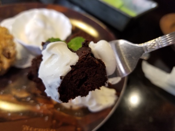 スイーツプレートには、アーモンドとひまわりの種の入ったスコーン、ガトーショコラの2点盛りです。