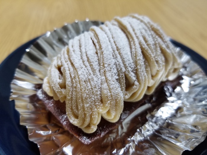 土台のボリューム感があって食べ応えのあるモンブラン。個人的には上のクリームがたっぷりな方が好きですが、栗のおいしさもしっかり味わえるモンブランで、これで370円は破格ですね。