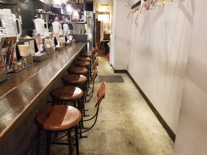 カウンター席が10席ほど。奥にテーブル席もあります。