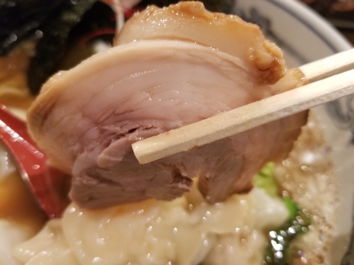 チャーシューは厚みはありませんが、柔らかくて、口の中に入れるとほろほろっと崩れるほど。