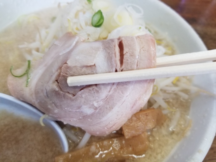 大量の背脂と塩っ辛いスープの荒々しい旨さは、やっぱりラーメンはこうでなくては!と思い知らせてくれる(^-^)