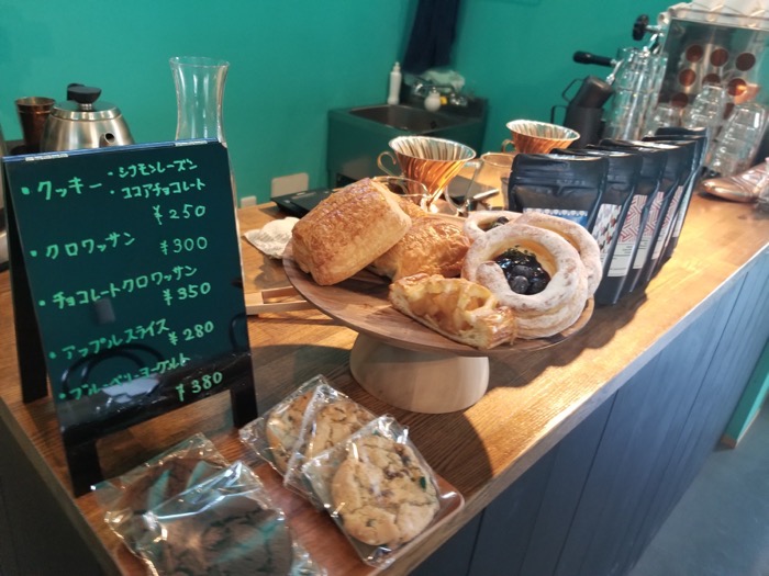 フードメニューは、レジ横でクロワッサンやクッキーなどの軽食も販売しています。