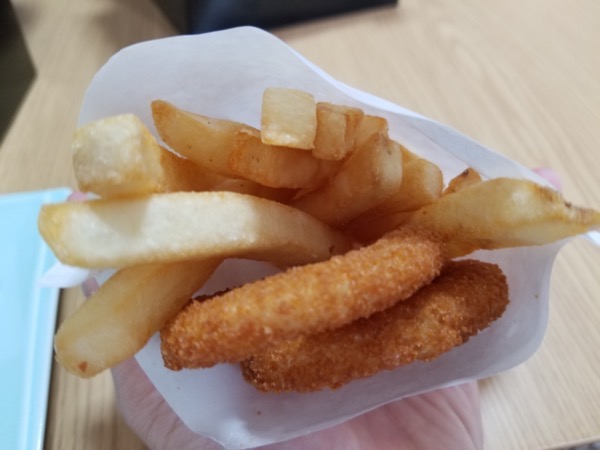 サイドメニューはフライドポテト10数本とオニオンリングが2つ入っています。