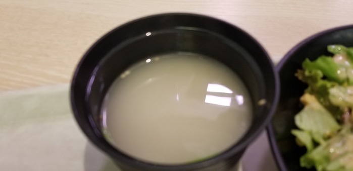 味噌汁かと思いきや、鶏で出汁を取ったコラーゲンスープ。あっさりだけどコクがあってうまい。