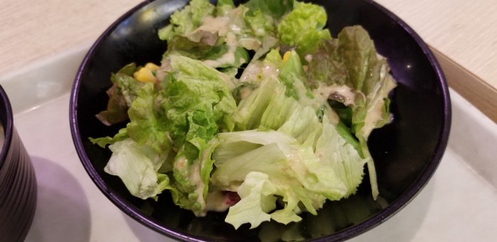 サラダがついてくるのも嬉しいですね。レタスがメインのシンプルなサラダです。
