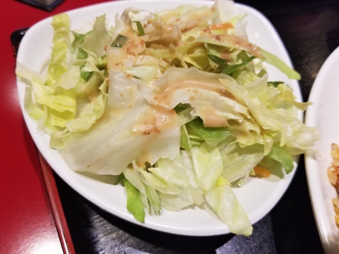 サラダはレタスにドレッシングをかけたシンプルなサラダです。