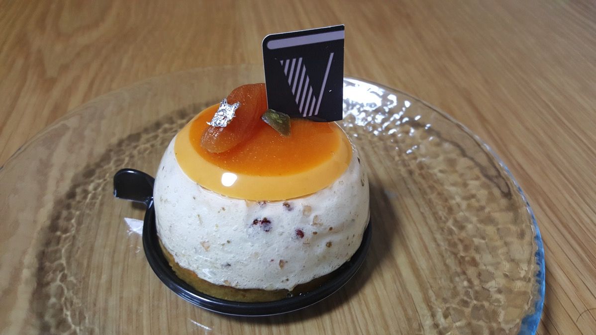 アプリコットとムースオヌガーを組み合わせたスイーツ。酸味と甘味のバランスが絶妙な一品でした。