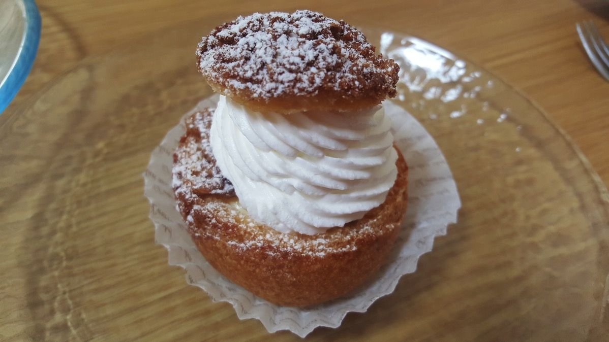 アンヴデットのシューヌガーはマカロン生地を載せて焼いたあまくさくっとしたシュー生地にふんわり生クリーム、カスタード、中にはヌガーが隠れています。つぶさな工夫で個性的なかわいいシュークリーム。お薦め #アマイタマシイ pic.twitter.com/keLmUhPGOL