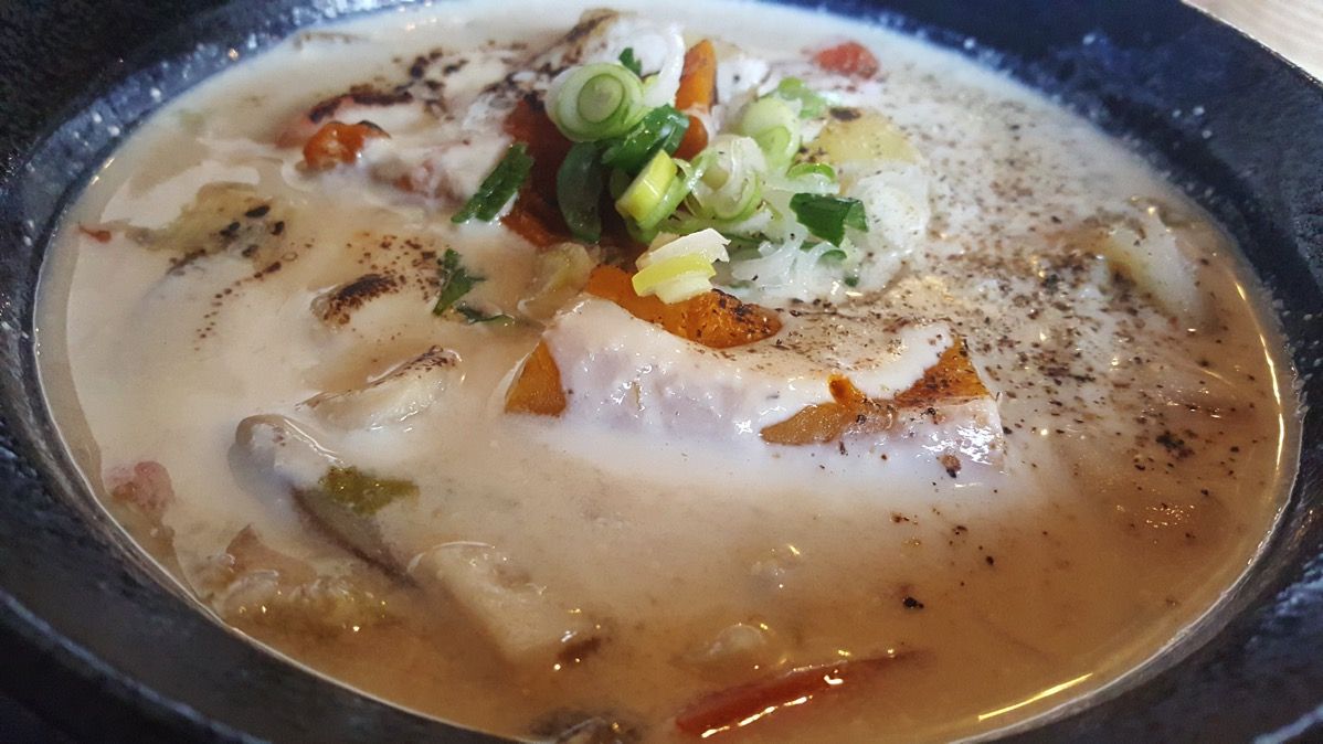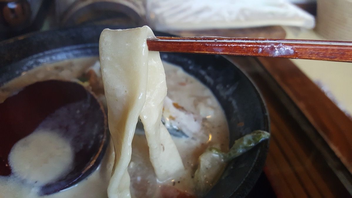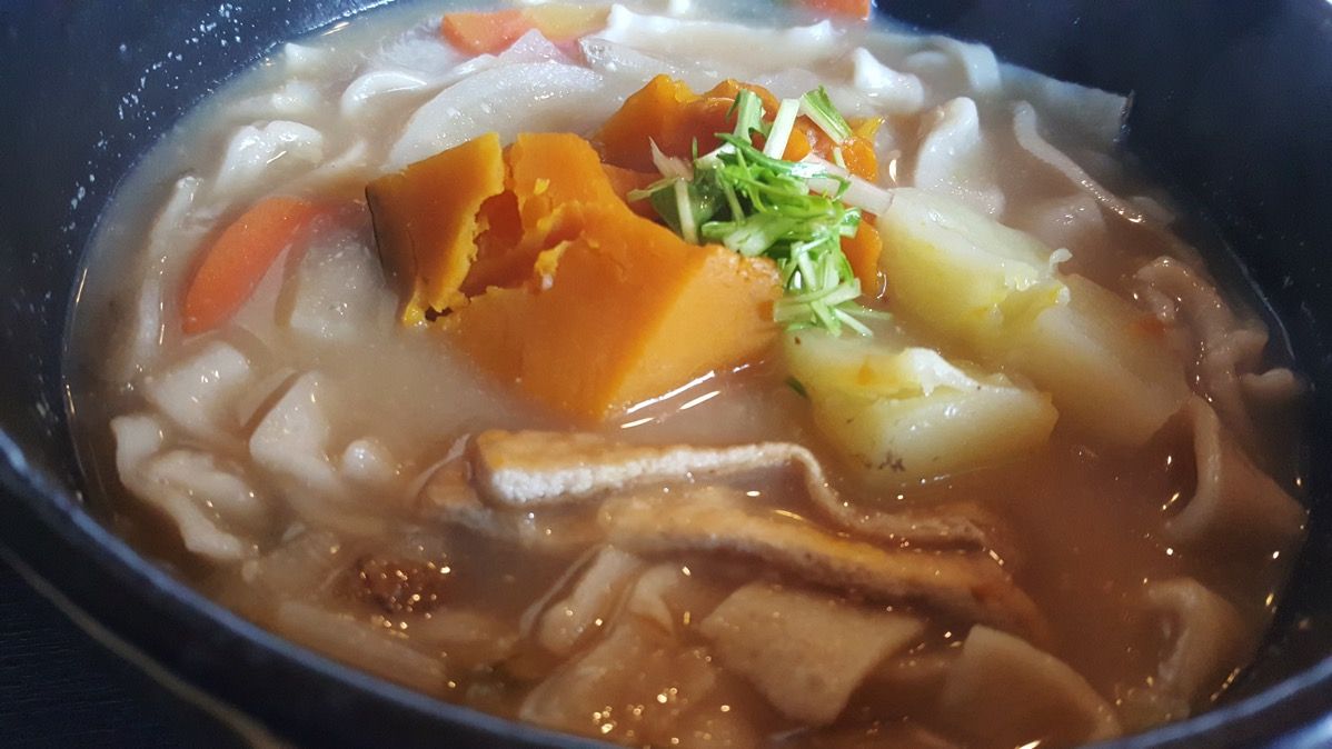 人気No2のメニューで見た目からして濃厚なチーズと豆乳のスープのほうとうです。
