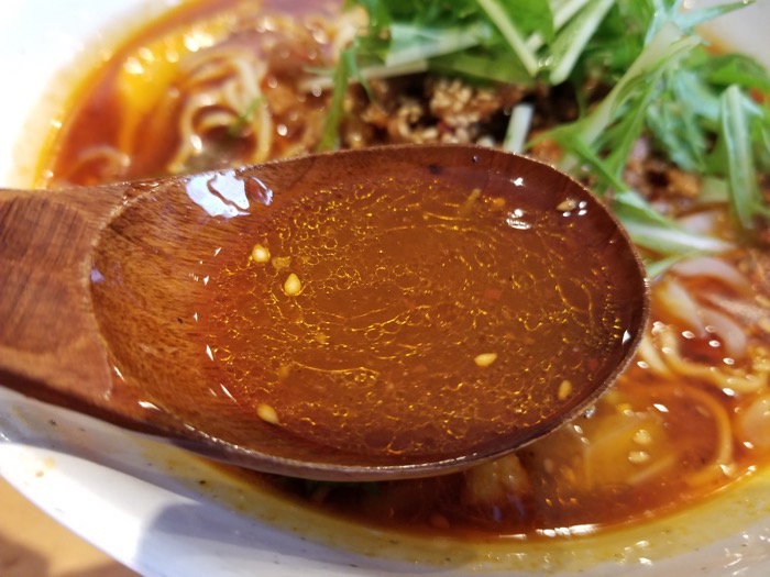 スープはサラッとしていて、山椒と唐辛子の辛さがピリッとシビれる刺激的なスープです。