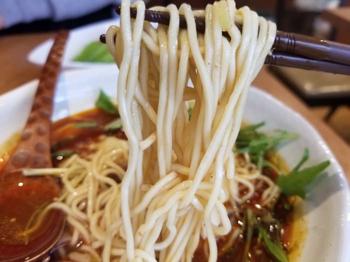 麺は細めのストレート麵でこの店のこだわり麵だそうです。辛いスープともマッチしていて、うまい!ボリュームもなかなかあって、満足感があります。