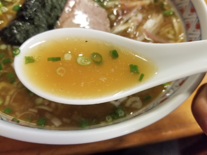 スープはかつおの出汁がしっかり効いてて、和のテイストでおいしい♪かつおの風味や醤油の風味が和食ぽさを出していて、懐かしさのようなものを感じます。