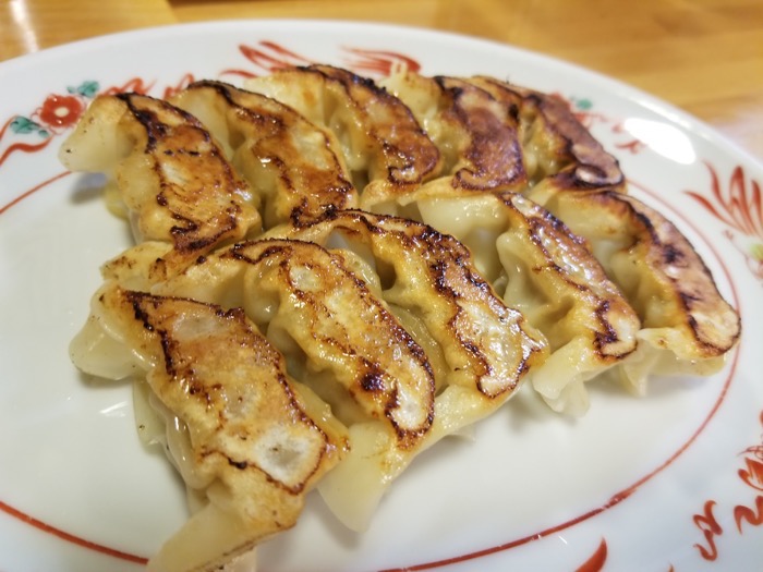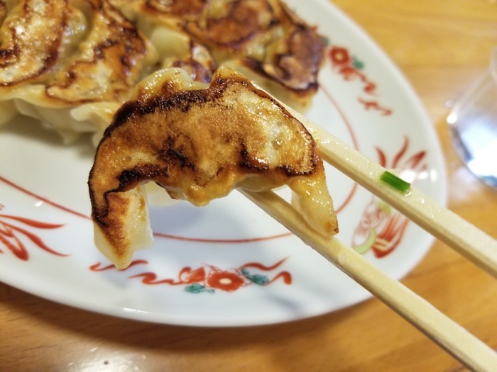 焼き加減が絶妙で外の皮がカリッとしていて、中の餡はジューシー。豚の脂の旨みを感じることができます。餃子を食べるとごはんも食べたくなりますね。