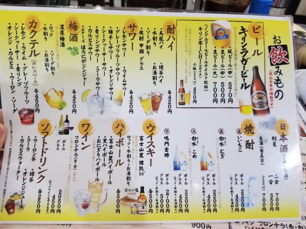 おしゃれなお酒は種類少なめですが、ビール、サワー、ハイボールなどは充分な品揃えです。