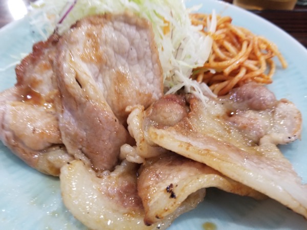 厚めの豚ロースにタレを絡めて、手早く炒められた感じで、火の通しかたがうまい!