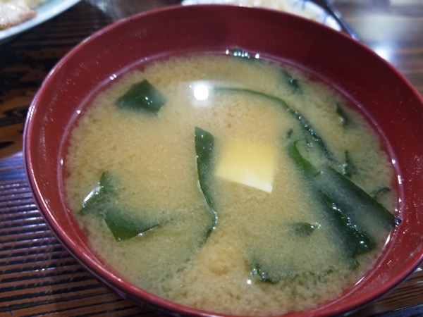 少し濃いめの味噌汁。具は豆腐とわかめでオーソドックスなタイプで安心感があります。