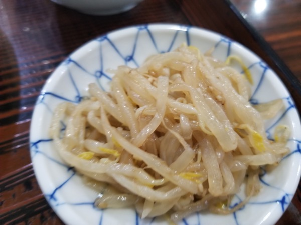 もやしのナムル。ごま油の香りが食欲をかき立てます。