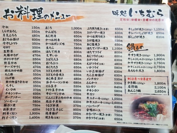 定食屋と居酒屋を兼ねるいちむらは、一品料理も充実してます!
