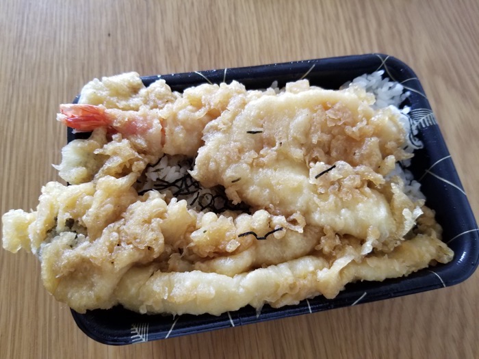 ズッシリ重い天丼をクソ暑い木場公園で食べました。