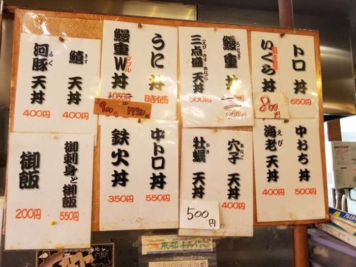 持ち帰りメニューは16種類あって、天丼やマグロの鉄火丼などあります。鰻重W丼が1750円でもっとも高価ですが、その他のメニューは500円前後とかなりリーズナブル!
