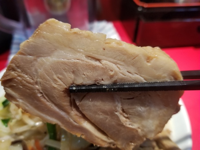 チャーシューは厚みもあって、ずっしりと存在感があります。厚みはありますが、柔らかく煮込まれていて、箸で切れるほどの柔らかさ。しっとりとしていてジューシー!ごはんにもよく合います。