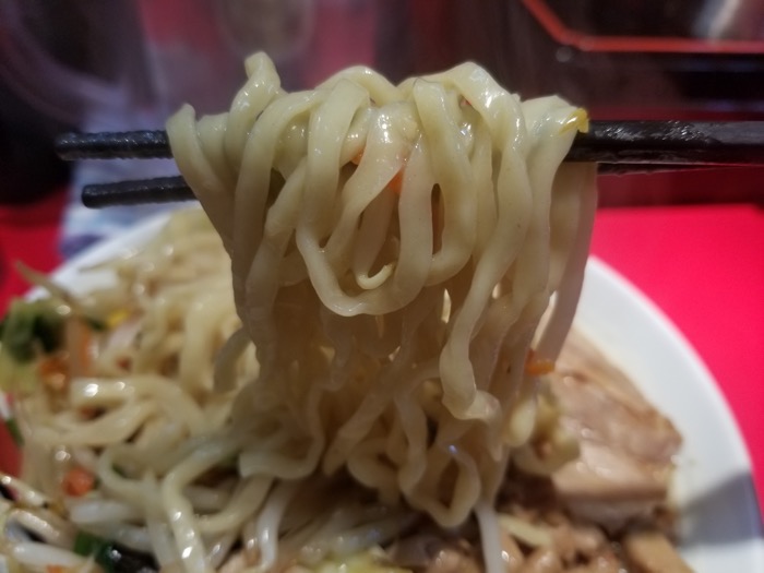 麺は浅草開化楼の特製麺を使っていて、存在感のある太麺で濃厚なスープによく合っています。もちもちした食感も良い。