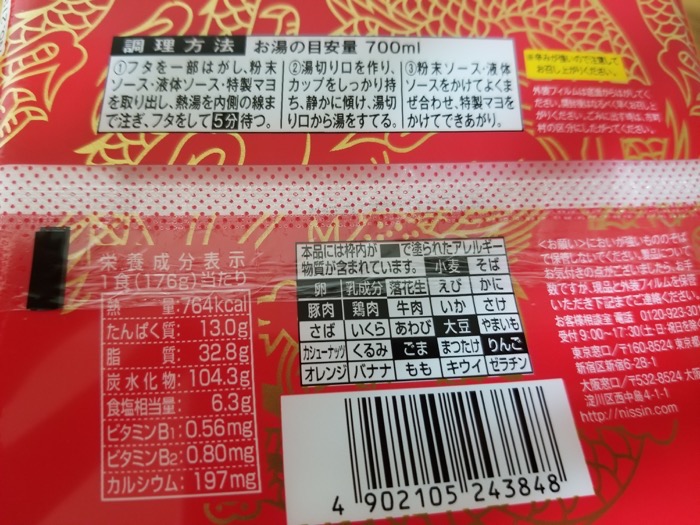 蒙古タンメン中本「辛旨焼そば」のカロリーも気になったので確認してみると、なんと764kcal!