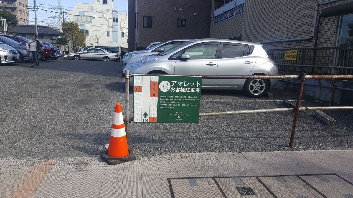アマレットには駐車場があります。駅離れているので、車で行くのがオススメです。