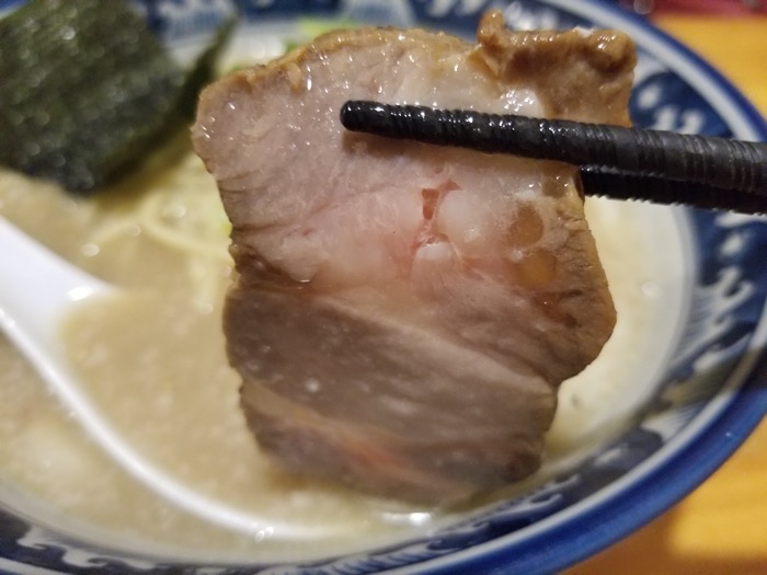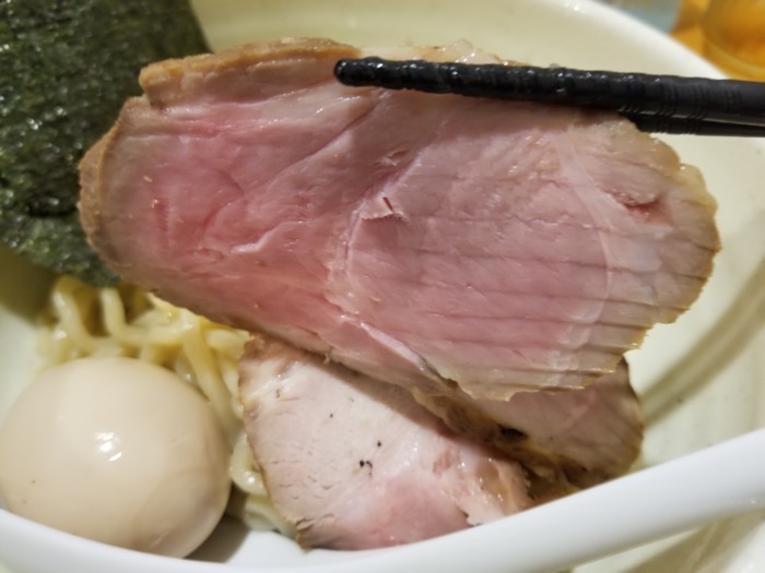 チャーシューはピンク色をしていて、ローストポークのようなチャーシューです。ピンク色に仕上げるのはかなり難しいので、店主の力量が感じられますね。まごころ厨房