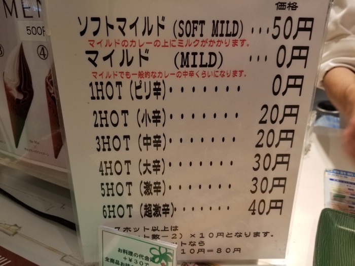 カレーは辛さを選ぶことができます。その気になれば100HOTも注文することができるそうです。実際に100HOTを注文した人もいるとか・・・。