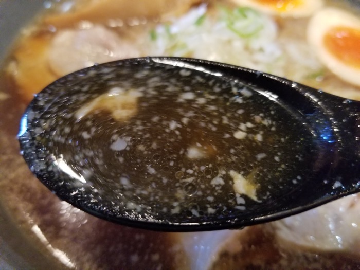 スープは鶏のだしと、ごま油の風味があって、こく旨ラーメンとは少し違った味わいの醤油スープ。