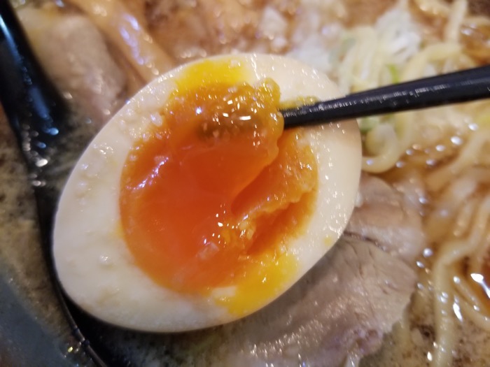 煮卵はほどよい半熟加減で、中心部分がとろっとしていて、うまい!