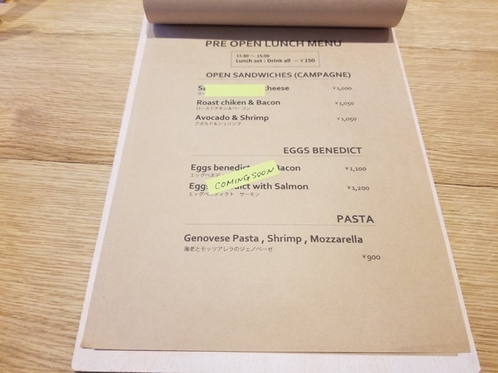 ランチメニューは1000円前後です。隣のお客さんがパスタやオープンサンドを食べていましたが、どちらもおいしそうでした!