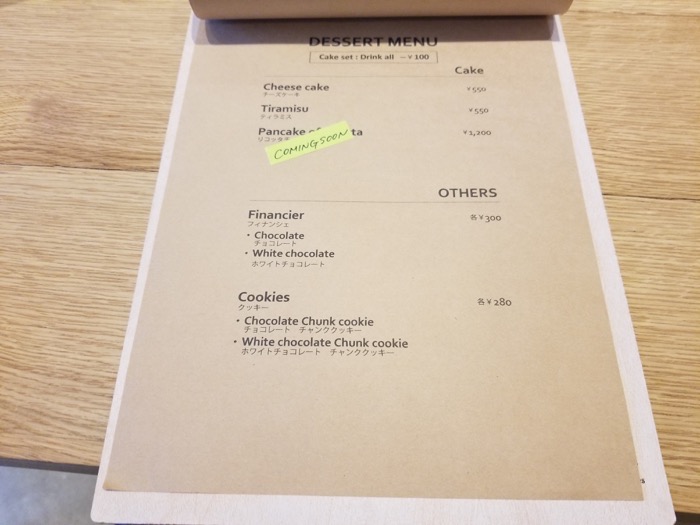 デザートメニューにはチーズケーキやティラミスなどもありますし、フィナンシェやクッキーなどの焼き菓子もあります。