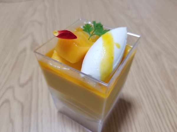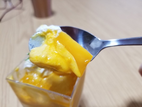 マンゴーの濃厚な甘みと、芳醇な香り。それにパッションフルーツの甘酸っぱさが加わって、すごく贅沢な一品!