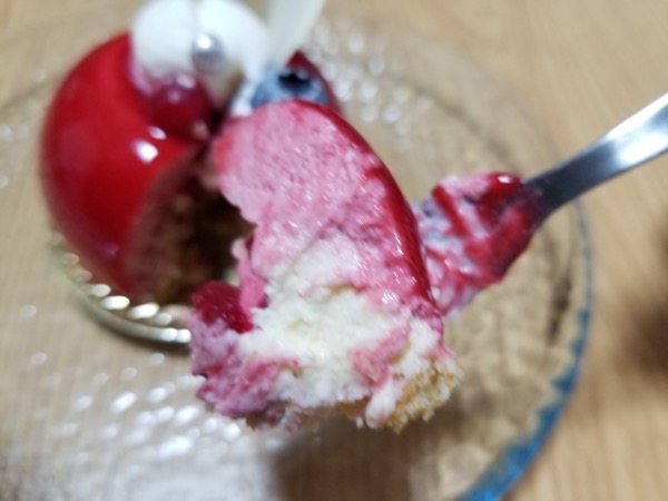 芳醇なフランボワーズのムースにホワイトチョコレーとのムースでできたケーキです。