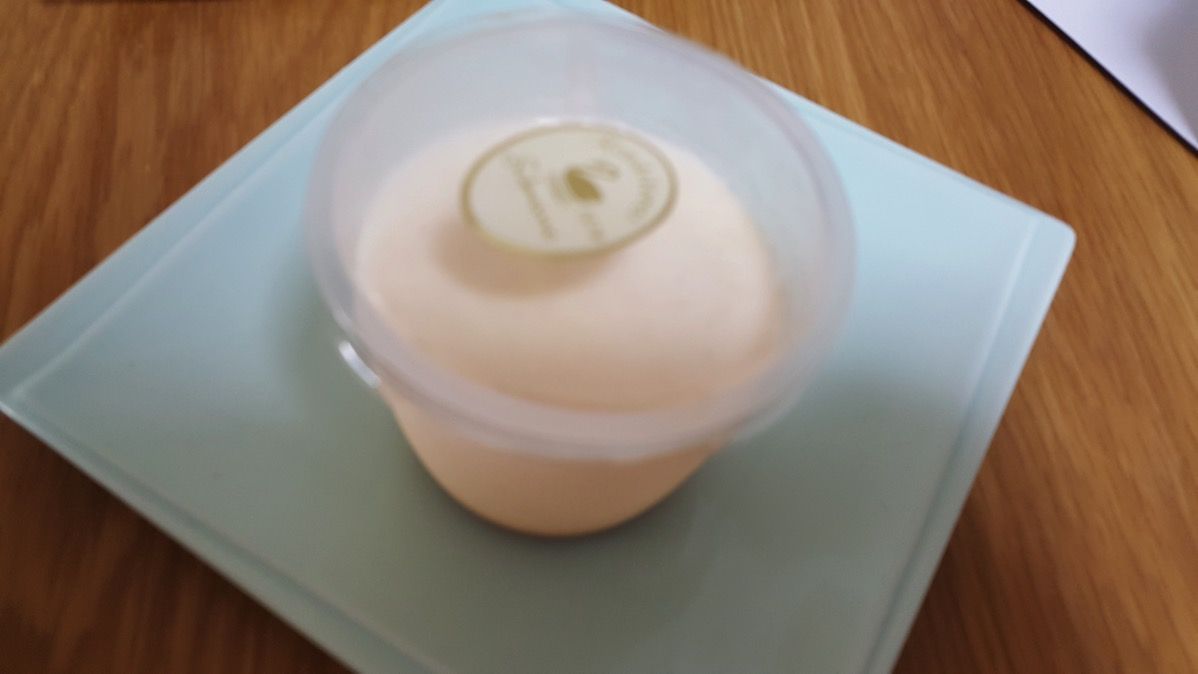 底にほんの少しだけカラメルソースが入っていて、上に生クリームものっています。プリン本体部分は素朴で優しい甘みで、昔ながらのプリンのいったイメージのプリンで美味でした!