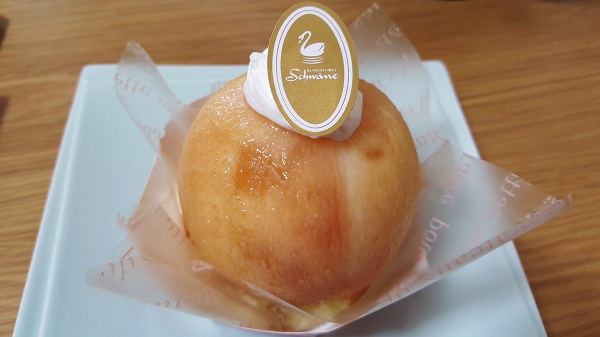 店員さんおすすめの一品で、種をくり抜いたピーチの中にカスタードクリームが詰められています!ピーチが爽やかで、夏にふさわしいスイーツです。ピーチをまるごと一つ使っているので、値段は少し高めの560円ですが、全然アリです!