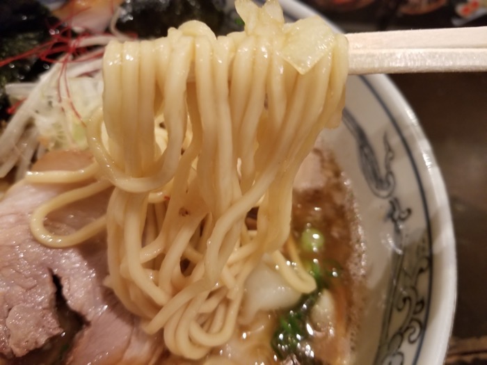 麺は中太のストレート麺。ツルツルした食感でスープによく合います。