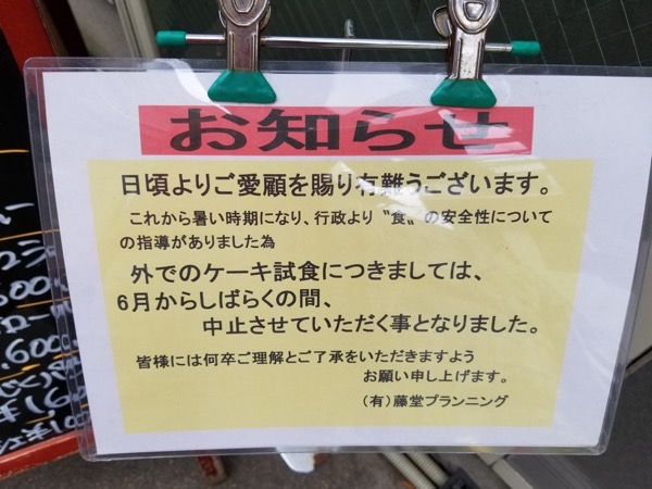 藤堂プランニングはカットケーキを無制限に試食ができるという、太っ腹で有名ですが、この試食が2018年6月より中止となっていました。