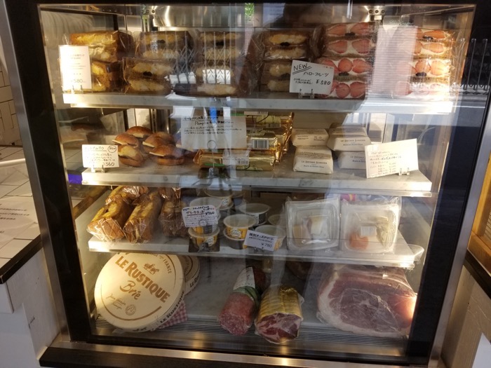 冷蔵庫の中には卵サンドをはじめとするサンドイッチや、生ハムが入っていて、生ハムは量り売りをしています。種類によって値段は少し異なりますが、50グラムで500円〜900円で買うことができます。