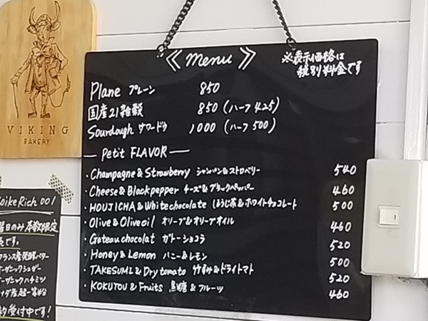 バイキングベーカリーゼロの食パンのメニューがこちら。