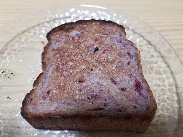 トーストして食べてみると、食感も香りも全然違って、食感はサックサク!香りは焼いた香ばしさと、ブルーベリーの香りが相まって、食欲をかきたてるいい香りになりました!